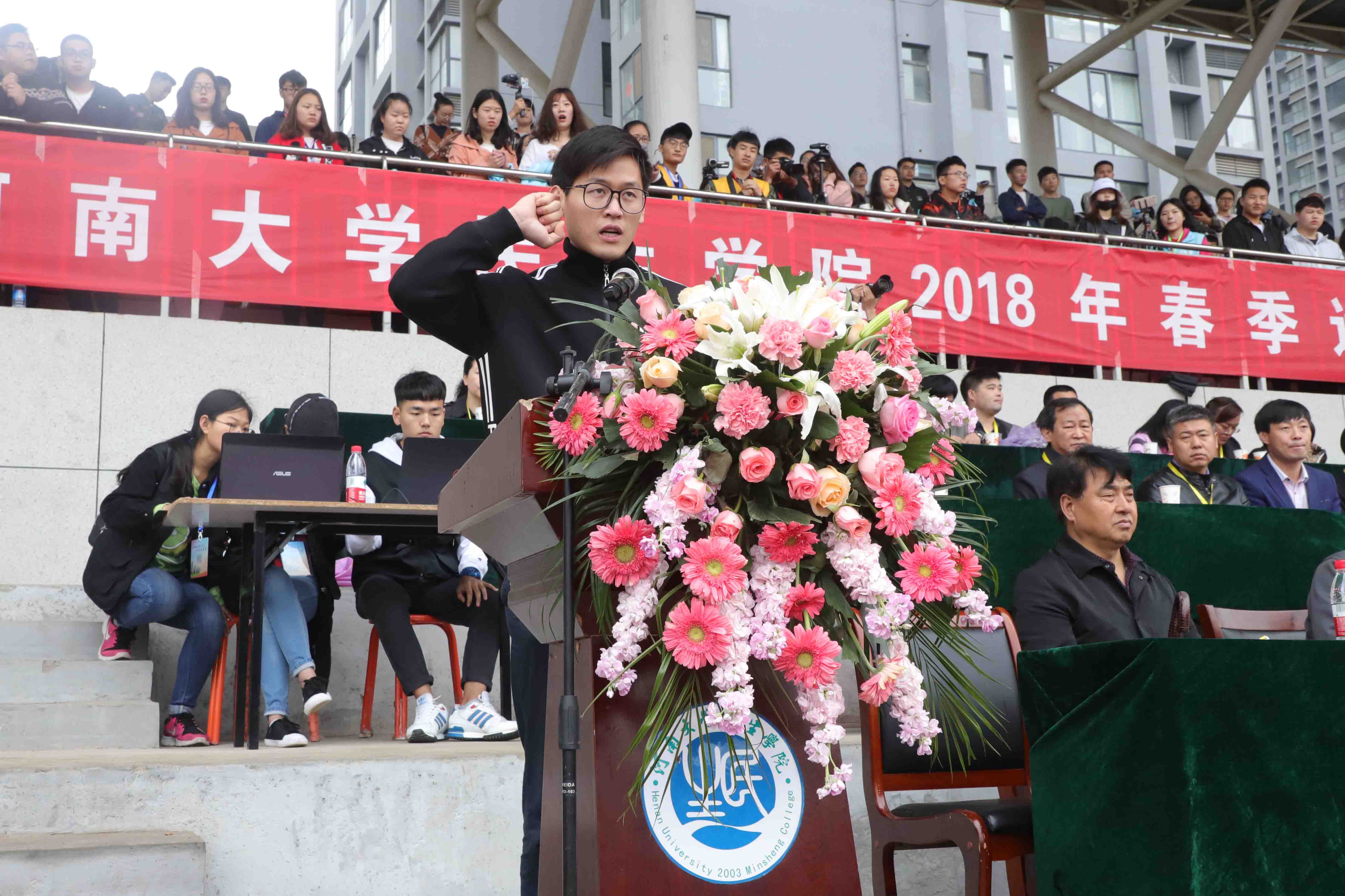 王庆礼宣布河南大学民生学院2018年春季运动会开幕。