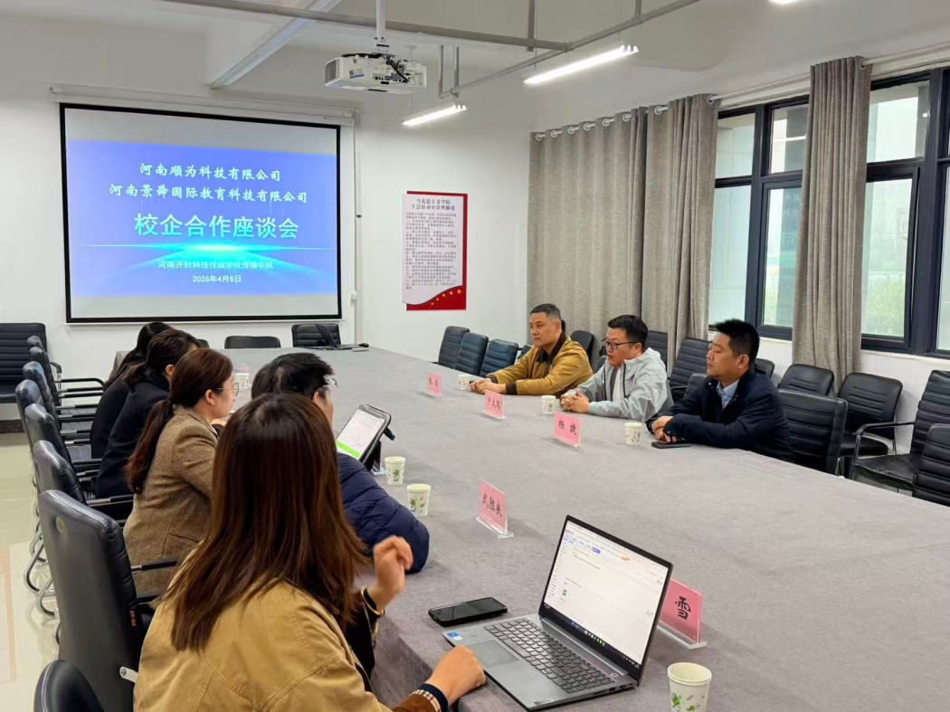 4月8日,传播学院与河南顺为科技有限公司、河南景舜国际教育科技有限公司,围绕产教融合、人才培养举行校企合作洽谈会。